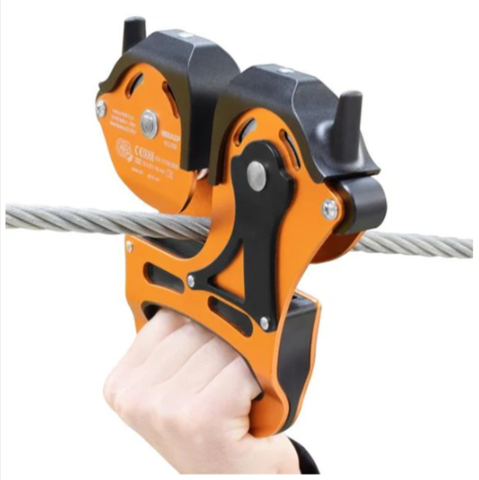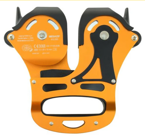 Double pulley for long and fast zip lines (over 300 m). Designed for use on 12mm to 16 mm cables. Large diameter steel pulleys and oversized bearings for longer life and smoother running.