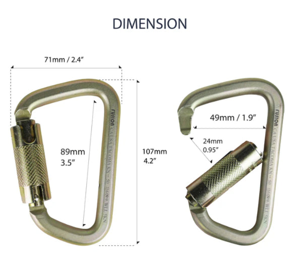 The Tacoma Steel 50KN Carabiner in Gold is engineered for demanding climbing, rescue, and rigging applications. This heavy-duty steel carabiner features a secure auto-locking or triple locking gate, D-shape design for optimal load distribution, and a snag-free key nose for safe and smooth operation.